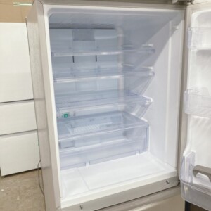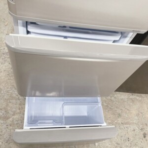 拝見したSJ-W357J-Nは、外観に目立つへこみや大きな傷は見られず、全体的に使用感の少ない状態でした。庫内についても棚板・ケース類はすべて揃っており、割れや欠け、強い汚れやにおい残りは確認されませんでした。冷蔵・冷凍ともに動作確認を行い、冷え具合も良好で実用面に問題はありません。引き出し部分の開閉もスムーズで、丁寧に使用されていた印象です。