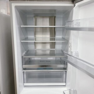 拝見したAQR-VD32F(N)は、外観に目立つへこみや大きなキズは見られず、全体的に使用感の少ない状態でした。庫内についても棚板・ドアポケット・引き出し類は揃っており、割れや欠損、強い汚れやにおい残りは確認されませんでした。冷蔵・冷凍ともに動作確認を行い、冷え具合も安定しており実用面で問題のない状態です。