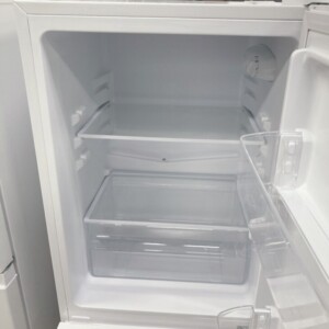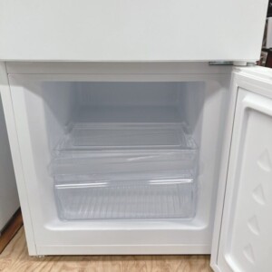 お預かりしたJR117ML01WHは、外観に目立つへこみや大きな傷はなく、全体的に非常にきれいな状態でした。庫内も清掃が行き届いており、棚板・クリアケース・ドアポケットなどの付属パーツの欠品もありません。冷蔵・冷凍ともに動作確認を行い、冷却性能にも問題は見られませんでした。