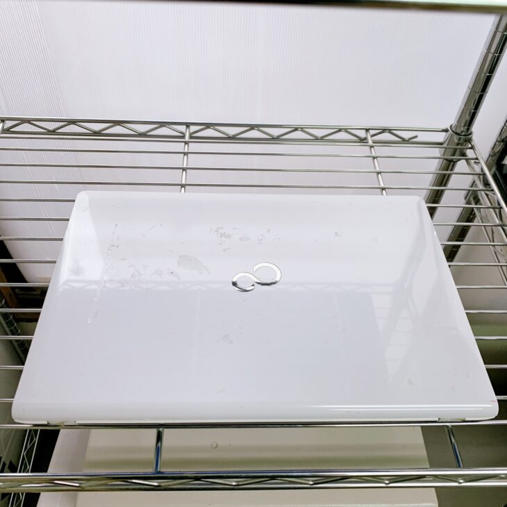 お預かりしたノートパソコンは、天板に使用に伴う擦れ跡や軽い汚れが見られましたが、大きな割れや深い傷はありませんでした。キーボードは文字消えが少なく、タッチパッドの反応も良好です。通電・起動確認、画面表示、基本的な操作についても問題なく、内蔵バッテリーは経年相応の消耗が見られるものの、ACアダプターが付属している点を評価しています。