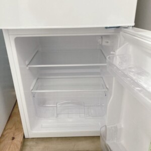 お預かりした冷凍冷蔵庫は、外装に目立つへこみや大きな傷は見られず、全体的にきれいな状態でした。庫内も棚板・ケースに割れや欠けはなく、汚れやにおい残りもほとんどありません。冷蔵・冷凍ともに通電確認を行い、冷却動作やドアパッキンの密閉性、温度調整つまみの反応など基本機能に問題がないことを確認しています。付属の製氷皿も揃っており、使用感の少ない印象でした。