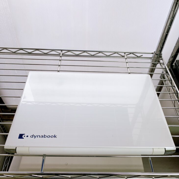 お預かりしたdynabook EX/46CWは、天板や底面に細かな擦れや使用に伴う傷が見受けられましたが、破損や大きな割れはありませんでした。キーボードは文字消えもなく入力反応も良好で、タッチパッドの動作も問題ありません。液晶画面は表示ムラやドット抜けは確認されず、通常使用に支障のない状態でした。バッテリーは経年なりの消耗はあるものの、通電・起動確認が取れています。付属品は本体のみで、箱や説明書はありませんでした。