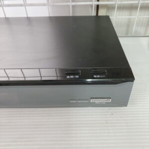 お預かりしたDMR-UBZ2020は電源の立ち上がりや基本操作に問題は見られず、ディスクトレイの開閉動作も正常に行えました。本体天面には使用に伴う細かな擦れや薄い線傷が見られますが、目立つへこみや割れはありません。前面パネルの表示部やボタンにも大きな劣化はなく、背面端子類も破損は確認されませんでした。付属品としてリモコンと電源コードが揃っている状態でした。