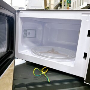 お預かりした電子レンジは通電・加熱動作ともに問題なく確認できました。庫内は白色で、ターンテーブルも付属しており、目立つ焦げや強い臭いは見られない状態です。使用に伴うごく軽微な汚れは確認されましたが、全体的には清潔感があります。外装についても大きな傷やへこみはなく、操作パネルの表示やボタン反応も良好でした。電源コードは純正品で、断線や劣化は見られません。