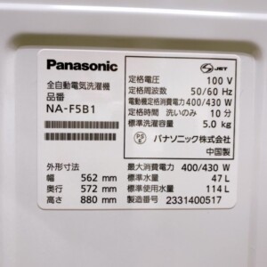 東京都中央区にて Panasonic 全自動洗濯機 NA-F5B1 5.0kg 状態良好のため適正価格で買取しました