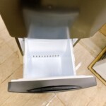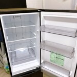 お預かりした冷凍冷蔵庫は、外観に目立つへこみや大きな傷は見られず、全体的に落ち着いたブラックカラーが保たれていました。庫内は棚板・ドアポケット・野菜ケースともに割れや欠けはなく清潔な状態で、使用による軽度の擦れはあるものの、再使用に支障のない内容です。冷蔵・冷凍ともに通電確認を行い、冷却動作は正常であることを確認しました。