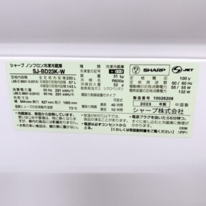 SJ-BD23K-Wは定格内容積230L(冷蔵143L・冷凍87L)の2ドア冷蔵庫で、夫婦世帯や少人数家庭向けとして中古市場でも需要の高いモデルです。2023年製と年式が新しく、庫内外の状態が良好で付属パーツの欠品もなかった点を評価しました。中古市場での成約状況や再販時の需要を踏まえ、総合的に判断した結果、買取価格は7,500円をご提示しています。他社では容量のみを重視して価格が抑えられる場合もありますが、当社では年式の新しさと実際の使用状態を重視して査定を行っています。