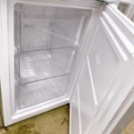 拝見した冷凍冷蔵庫は、外観に目立つへこみや大きな傷は見られず、ホワイトカラーの扉面も全体的にきれいな状態でした。冷蔵室内はガラス棚・ドアポケット・野菜ケースがすべて揃っており、割れや欠けは確認されません。庫内に強い汚れやにおいの付着もなく、日常的に丁寧に使用されていた印象です。冷凍室の引き出しも透明度が保たれており、霜の付着は軽微でした。通電確認では冷蔵・冷凍ともに正常に冷却されていることを確認しています。