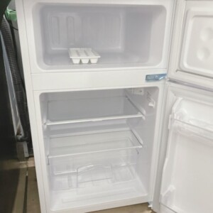 外観は全体的に目立つ傷やへこみがなく、清潔感のある状態でした。庫内についても棚板・ケースに割れや欠品は見られず、冷蔵室・冷凍室ともに使用感は軽度でした。通電確認および冷却動作に問題はなく、年式が新しいこともあり状態は良好と判断しています。