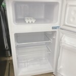 外観は全体的に目立つ傷やへこみがなく、清潔感のある状態でした。庫内についても棚板・ケースに割れや欠品は見られず、冷蔵室・冷凍室ともに使用感は軽度でした。通電確認および冷却動作に問題はなく、年式が新しいこともあり状態は良好と判断しています。