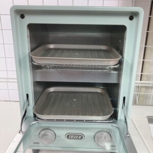 お預かりしたオーブントースターは、外装に目立つへこみや大きな傷は見られず、全体的に丁寧に使用されていた印象でした。庫内はパンくずや焦げ付きが少なく、トレイや焼き網も揃った状態で、使用感はあるものの清潔に保たれていました。動作確認では加熱・タイマーともに問題なく、日常使用に支障のない状態でした。