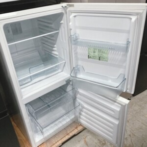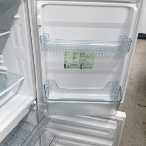 お預かりした冷蔵庫は、外装に目立つへこみや破損はなく、全体的に良好な状態でした。庫内についても強いニオイ残りや着色汚れは見られず、棚・ドアポケット・ケース類も揃っていました。冷却動作も確認でき、日常使用に支障のない状態であることを確認しています。