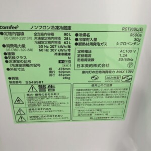 今回は福岡県春日市にお住まいの30代男性より、Comfee ノンフロン冷凍冷蔵庫 RCT90BL(E)(2024年製)を出張買取にてご依頼いただきました。単身用として使用されていた冷蔵庫で、生活環境の変化に伴い整理をご検討されていたとのことです。