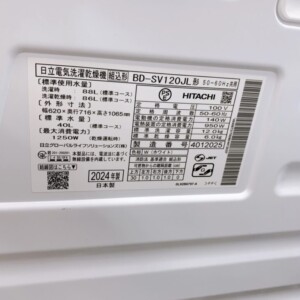 今回は福岡県大牟田市にお住まいの40代女性より、日立 ドラム式電気洗濯乾燥機 BD-SV120JL(2024年製)を出張買取にてご依頼いただきました。ご家族で使用されていた洗濯機でしたが、住環境の変化に伴い整理をご検討されたとのことです。