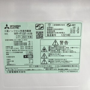福岡市にて三菱 冷凍冷蔵庫 MR-P15F-H 2021年製 状態良好のため適正価格で査定しました