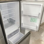 本体外観はダークグレー系カラーで、目立つへこみや大きな傷は見られず、使用に伴う軽微なスレがある程度でした。庫内は棚・引き出し・ドアポケットともに揃っており、汚れや臭い残りも少なく清潔な状態です。