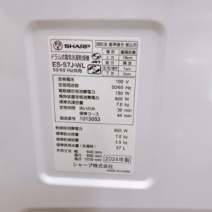 今回は福岡県太宰府市にお住まいの30代男性・会社員・夫婦世帯・賃貸(マンション)のお客様より、SHARP ドラム式洗濯乾燥機 ES-S7J-WL(2024年製)を出張買取にてご依頼いただきました。