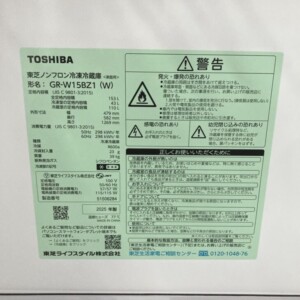 福岡県福岡市西区へ出張買取 東芝 ノンフロン冷凍冷蔵庫 GR-W15BZ1 2025年製 全体的にきれいな状態のため高評価で査定しました