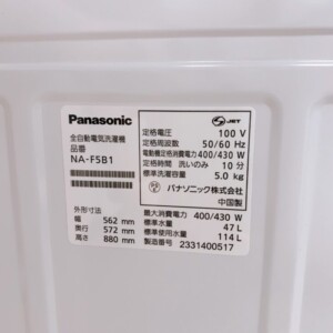 福岡県直方市にてPanasonic 全自動洗濯機 NA-F5B1 使用感ありのため状態を考慮して査定しました