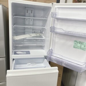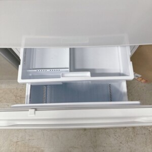 お引き取りした冷蔵庫は、外観に大きな傷やへこみはなく、全体的にきれいな状態でした。使用に伴う軽微な擦れや手跡は見られましたが、庫内は清潔に保たれており、棚板・ドアポケットなどの付属品もすべて揃っている状態です。冷却動作も問題なく確認できました。