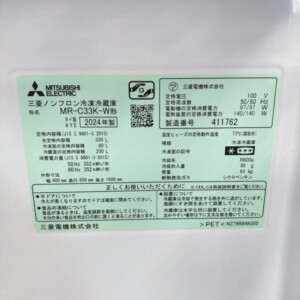 福岡県福岡市中央区へ出張買取 三菱 ノンフロン冷凍冷蔵庫 MR-C33K-W 2024年製 きれいな状態のため適正価格で査定しました