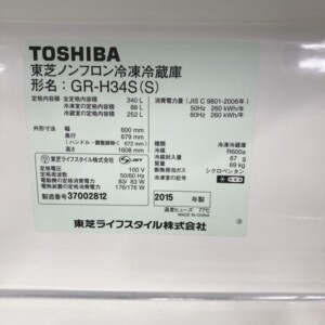 福岡県筑紫野市へ出張買取 東芝 ノンフロン冷凍冷蔵庫 GR-H34S 2015年製 全体的にきれいな状態のため適正価格で査定しました