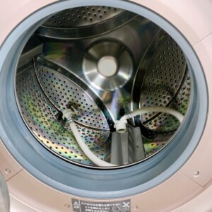 査定したES-S7G-NLは、外観に使用に伴う軽度の汚れが確認できましたが、大きな傷やへこみは見られませんでした。ドラム内部は洗剤残りやカビ汚れも少なく、非常にきれいな状態が保たれており、洗濯・乾燥ともに動作確認は問題ありませんでした。付属品として給排水ホースが揃っている点も評価対象となりました。