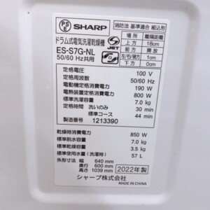福岡県北九州市小倉南区でSHARP ドラム式電気洗濯乾燥機 ES-S7G-NLを出張買取 使用感を考慮して適正価格で査定しました