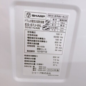今回は福岡県北九州市八幡東区にお住まいの20代女性より、SHARP ドラム式電気洗濯乾燥機 ES-S7J-WL(2024年製)を出張買取にてご依頼いただきました。会社員の方で、単身世帯の賃貸マンションに設置されていた洗濯乾燥機です。お仕事の都合で店舗へ持ち込む時間が取れず、電話から出張買取のご相談をいただきました。