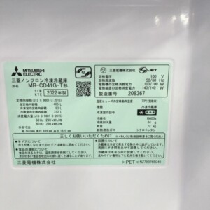 今回は福岡県古賀市にお住まいの40代男性より、三菱 ノンフロン冷凍冷蔵庫 MR-CD41G-T(2022年製)を出張買取にてご依頼いただきました。会社員の方で、夫婦世帯の持ち家(分譲マンション)に設置されていた冷蔵庫です。家電の入れ替えに伴い不要となり、電話から査定のご相談をいただきました。