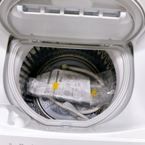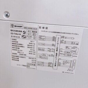 査定したES-TX6J-Wは、外観に目立つ傷やへこみはなく、全体的にきれいな状態でした。操作パネルの文字消えやボタンの反応不良もなく、洗い・すすぎ・脱水・乾燥の各工程で動作確認は良好です。内部の洗濯槽も汚れの付着が少なく、清潔感のある状態を保っていました。さらに、給水ホースや説明書などの付属品が揃っている点も確認できています。