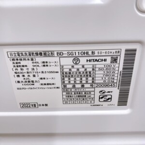 BD-SG110HLは日立のビッグドラムシリーズの中でも洗濯11kg・乾燥6kgと需要の高いモデルで、2022年製と比較的新しい点が査定評価につながりました。外観に多少の使用感はあるものの、内部状態や動作が良好で、日本製である点もプラス要素です。