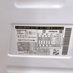 福島県いわき市でHITACHI ドラム式洗濯乾燥機 BD-SV110ARを出張買取 使用感はあるが動作良好のため適正価格で査定しました