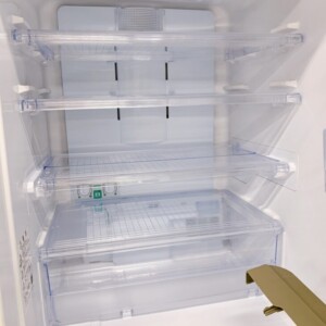 拝見した冷蔵庫は、外観に目立つへこみや大きな傷は見られず、全体的にきれいな状態でした。庫内についても棚板・ケース類がすべて揃っており、黄ばみや強い使用感も確認されませんでした。冷蔵・冷凍ともに動作は正常で、異音や冷却ムラもなく、実使用に問題のない良好なコンディションを保っていました。