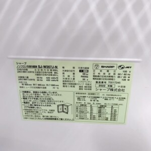 SJ-W357J-Nは350Lクラスで需要の高いサイズ帯であり、2022年製と比較的新しい点、さらに庫内の清潔感や付属品完備といった条件を評価しました。中古市場での流通価格を踏まえ、状態を総合的に判断した結果、今回は10,000円での査定価格をご提示しています。