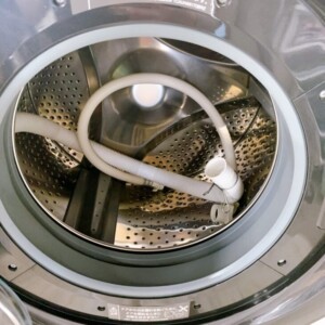 お引き取りしたES-S7H-WLは、ドラム内部に目立つ汚れやにおいの付着がなく、非常に清潔感のある状態でした。ステンレス槽にも大きなキズや変色は見られず、給水ホースなどの付属品も揃っていました。外装についても使用に伴うごく軽微なスレがある程度で、全体として中古品としては良好なコンディションです。洗い・すすぎ・脱水・乾燥まで一連の動作確認を行い、動作面に問題がないことを確認しました。