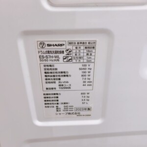 ES-S7H-WLは、コンパクト設計で設置しやすいSHARPの人気ドラム式モデルで、2023年製と比較的新しい点は評価ポイントとなりました。一方で、洗濯容量7.0kgクラスは中古市場での流通量が多く、価格が安定しやすい傾向があります。これらを踏まえ、状態・年式・再販相場を総合的に判断した結果、今回は買取価格18,000円での査定となりました。理由を丁寧にご説明したところ、ご納得いただき、その場でのお引き取りとなりました。