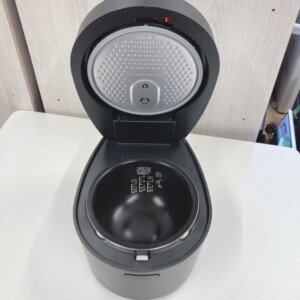 拝見した炊飯器は外装・操作パネルともに目立つ傷は見られず、全体的に丁寧に使用されていた印象でした。内釜にも大きな剥がれはなく、炊飯・保温などの基本動作も問題なく確認できました。本体のみで、計量カップやしゃもじなどの付属品はありませんでした。