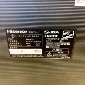 北海道苫小牧市にてHisense 液晶テレビ 24A40G 24型 使用感少なめを出張買取しました