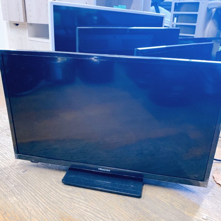 お預かりしたHisense 24A40Gは、画面に目立つ傷や焼き付きは見られず、全体的にきれいな状態でした。本体フレームや背面にも大きなダメージはなく、動作確認においても映像・音声ともに問題はありません。リモコンも付属しており、通常使用に支障のない内容でした。