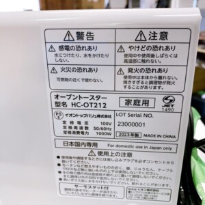 神奈川県川崎市川崎区にてトップバリュ HOME COORDY オーブントースター HC-OT212 2023年製 使用感ありのため適正価格で出張買取しました