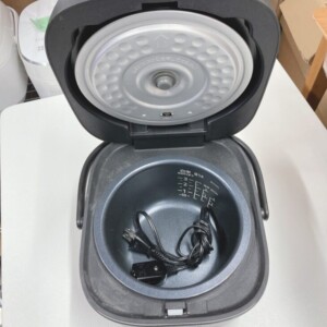 お預かりした炊飯器は、外観に大きな傷や割れは見られませんが細かい傷があり、内釜には軽度の使用感はあるものの、コーティングの剥がれや深い傷はなく、炊飯性能に影響するダメージは確認されませんでした。動作確認では炊飯・保温ともに問題なく、電源コードも付属しており、すぐに再利用可能な状態でした。