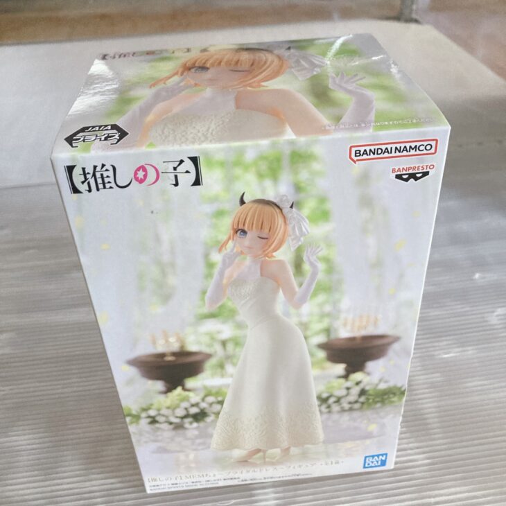 本商品は、テレビアニメ【推しの子】の人気キャラクター「MEMちょ」を立体化したプライズフィギュアで、ウェディングドレス衣装という点も需要があります。中古市場では未開封・箱ありの個体が一定数流通しているものの、状態差で価格が分かれやすい傾向があります。今回は外箱状態が良好だった点を評価し、1,800円での買取査定としました。