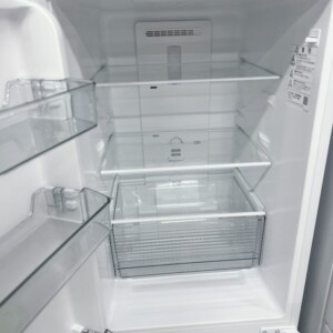 お預かりした冷蔵庫は、外観に目立つ傷やへこみはなく、全体的にきれいで使用感の少ない状態でした。庫内も棚・ドアポケットともに汚れの付着は少なく、清潔感が保たれています。冷却動作や庫内灯の点灯にも問題はなく、付属品(棚・ケース類)もすべて揃っている点は査定時の評価ポイントとなりました。