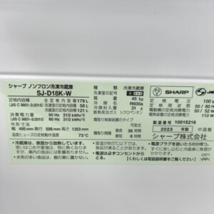 神奈川県川崎市高津区へ出張買取 シャープ ノンフロン冷凍冷蔵庫 SJ-D18K-W 2023年製 全体的にきれいで使用感が少ないため状態を踏まえて査定しました