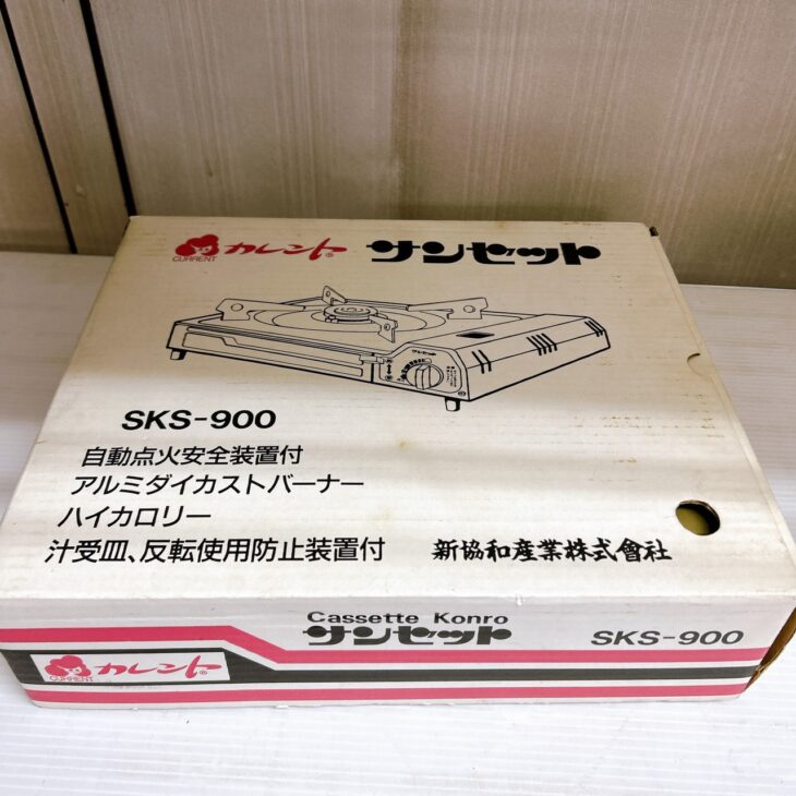 神奈川県秦野市にて カレント(CURRENT)カセットコンロ サンセット(Sunset)SKS-900 箱に経年の痛みありのため状態を考慮して査定しました