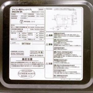 今回は神奈川県大和市にお住まいの30代男性・会社員より、ニトリ マイコン電子レンジ 17L BN20M BK(2025年製)を出張買取にてご依頼いただきました。単身世帯で賃貸マンションにお住まいのお客様からのご相談です。