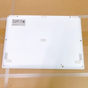 本体外装の底面には使用に伴う細かな擦れや軽度の汚れが確認できましたが、キーボードの文字消えや大きな破損はありませんでした。ACアダプターも付属しており、実用性のある中古ノートパソコンとして評価できる状態でした。