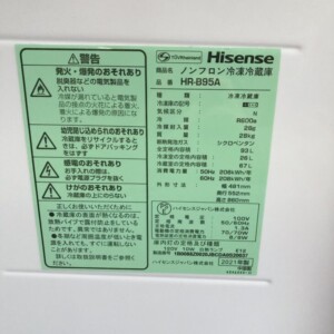 福島県川内村へ出張買取 Hisense ノンフロン冷凍冷蔵庫 HR-B95A 2021年製 使用感少なめのため適正価格で査定しました