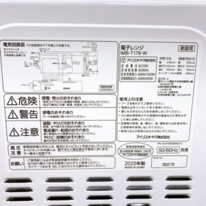 今回は福島県伊達郡川俣町にお住まいの40代女性より、アイリスオーヤマ 電子レンジ IMB-T178-W(2025年製)を出張買取にてご依頼いただきました。賃貸(マンション)にお住まいの単身世帯のお客様からのご相談です。